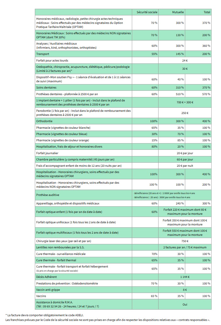 Taux calculés sur le tarif de base de la sécurité sociale en application des textes sur les CONTRATS RESPONSABLES